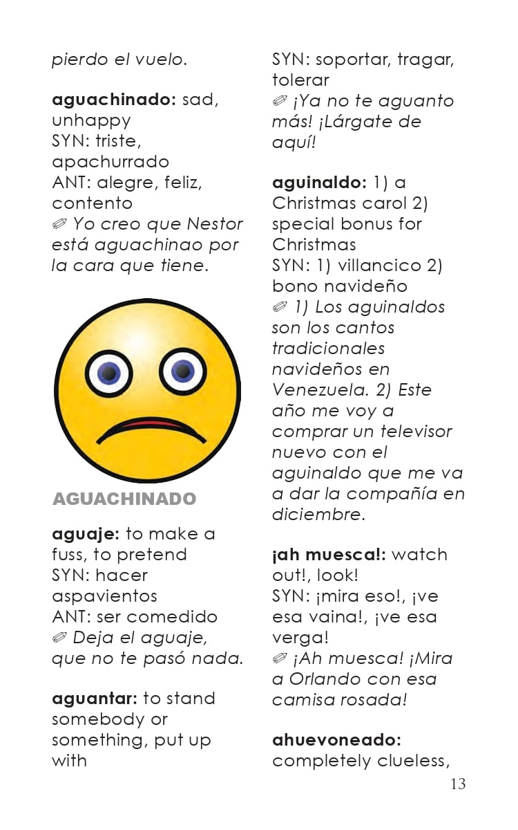 This dictionary-style PDF ebook of words and phrases helps you better understand Venezuelan Spanish and slang. The collection of more than 500 terms and sayings will help you become familiar with the richness of the country’s Spanish. It includes slang and naughty words that you will likely run across in everyday conversations.